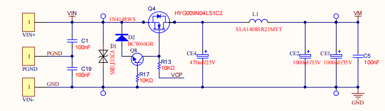 Input is through N tubes to achieve anti reverse function. Use CE4, L1, and CE2 to form a π - type filter. Can effectively reduce power interference.